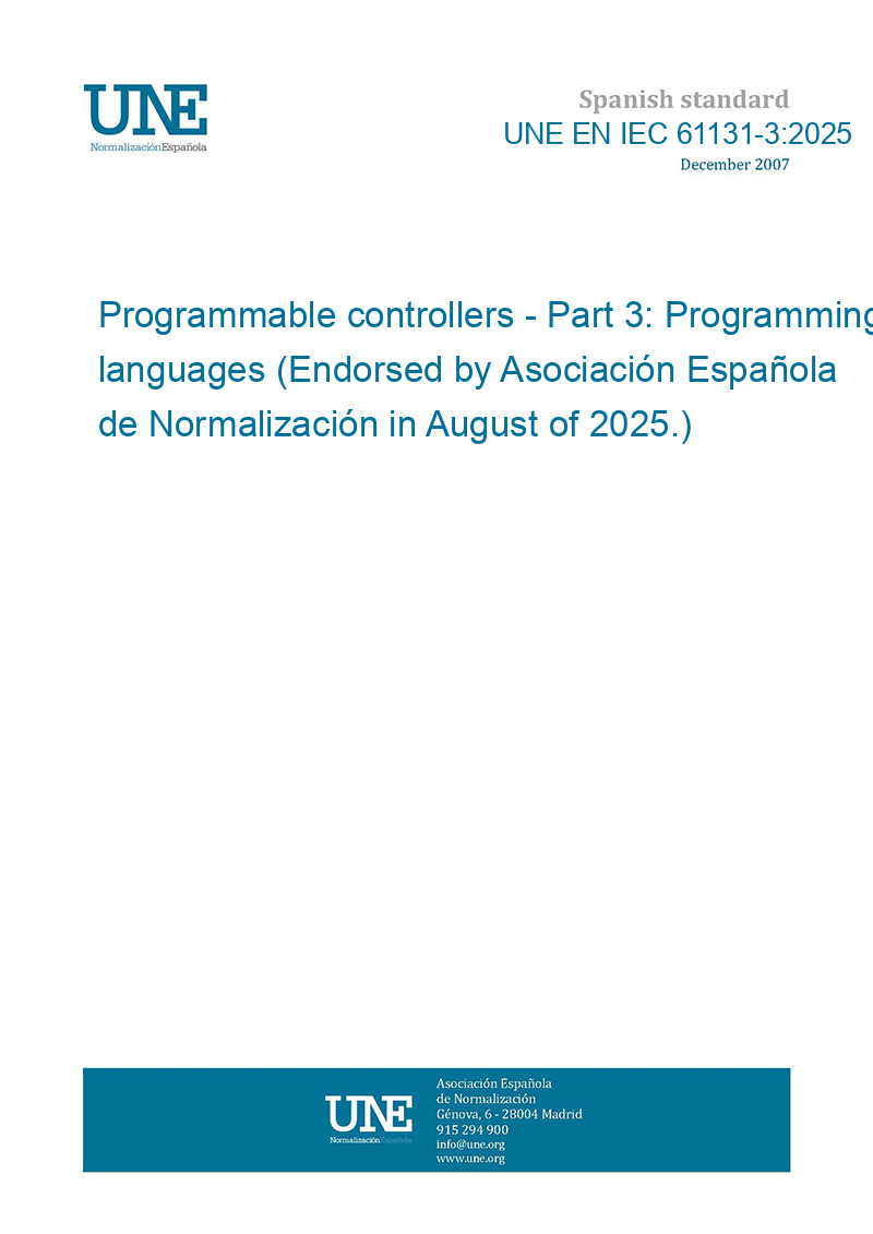 Programmable controllers - Part 3: Programming languages (Endorsed by Asociación Española de Normalización in August of 2025.)
