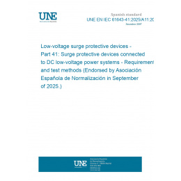 Dispositivos de protección contra sobretensiones transitorias de baja tensión. Parte 41: Dispositivos de protección contra sobretensiones transitorias conectados a sistemas eléctricos de baja tensión en c.c. Requisitos y métodos de ensayo. (Ratificada por la Asociación Española de Normalización en septiembre de 2025.)