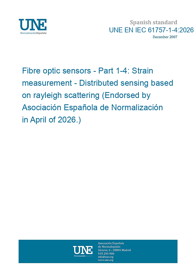 Sensores de fibra óptica. Parte 1-4: Medición de la deformación. Detección distribuida basada en la dispersión de rayleigh (Ratificada por la Asociación Española de Normalización en abril de 2026.)