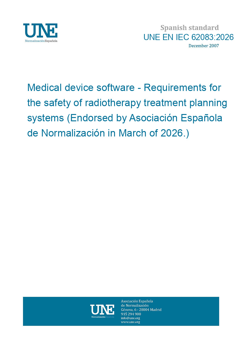 This standard UNE EN IEC 62083:2026 Medical device software - Requirements for the safety of radiotherapy treatment planning systems (Endorsed by Asociación Española de Normalización in March of 2026.) is classified in these ICS categories: