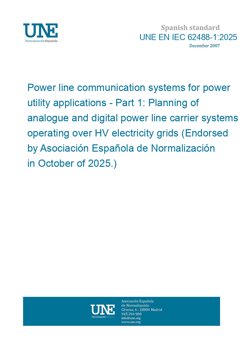 Sistemas de comunicación por líneas eléctricas para aplicaciones de compañías eléctricas. Parte 1: Planificación de sistemas portadores de línea eléctrica analógicos y digitales operados sobre redes eléctricas de alta tensión (AT) (Ratificada por la Asociación Española de Normalización en octubre de 2025.)