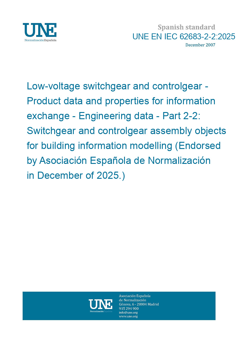 Aparamenta de baja tensión. Datos y propiedades del producto para el intercambio de información. Datos de ingeniería. Parte 2-2: Objetos de conjuntos de aparamenta para el modelado de información de construcción. (Ratificada por la Asociación Española de Normalización en diciembre de 2025.)