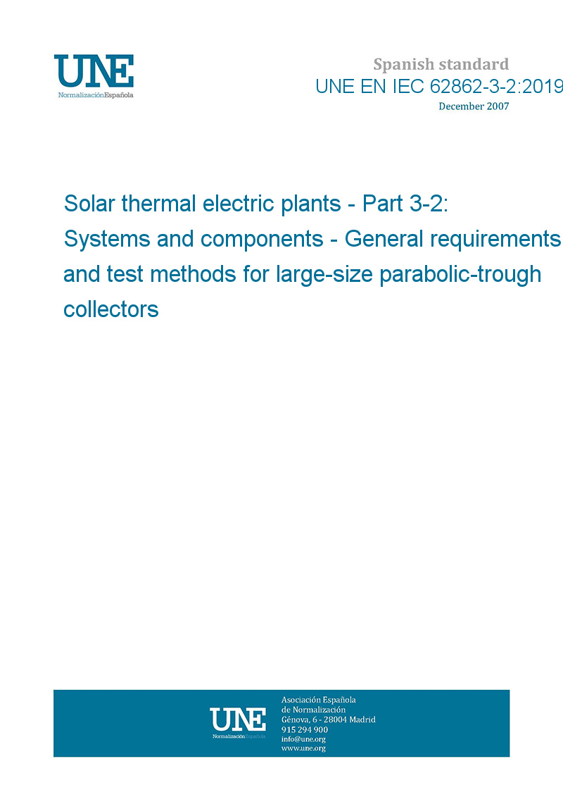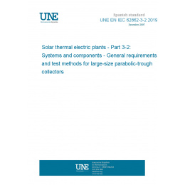 Plantas termosolares. Parte 3-2: Sistemas y componentes. Requisitos generales y métodos de ensayo para captadores cilindroparabólicos de gran tamaño.