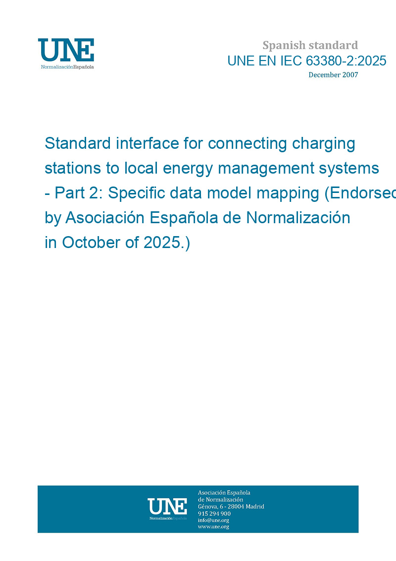 Interfaz estándar para la conexión de estaciones de carga a sistemas locales de gestión de energía. Parte 2: Asignación específica del modelo de datos (Ratificada por la Asociación Española de Normalización en octubre de 2025.)