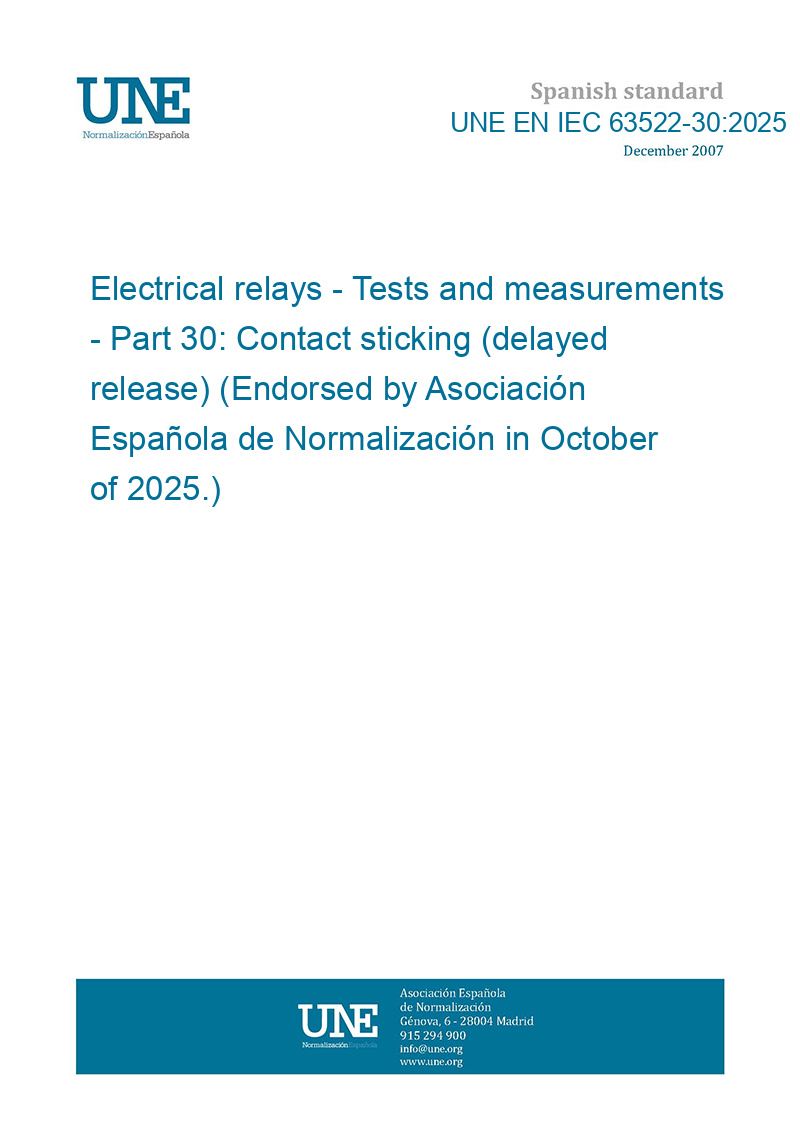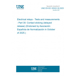 Relés eléctricos. Ensayos y medidas. Parte 30: Adherencia de contacto (liberación retardada) (Ratificada por la Asociación Española de Normalización en octubre de 2025.)
