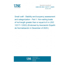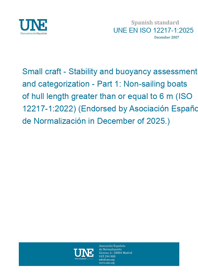 Small craft - Stability and buoyancy assessment and categorization - Part 1: Non-sailing boats of hull length greater than or equal to 6 m (ISO 12217-1:2022) (Endorsed by Asociación Española de Normalización in December of 2025.)