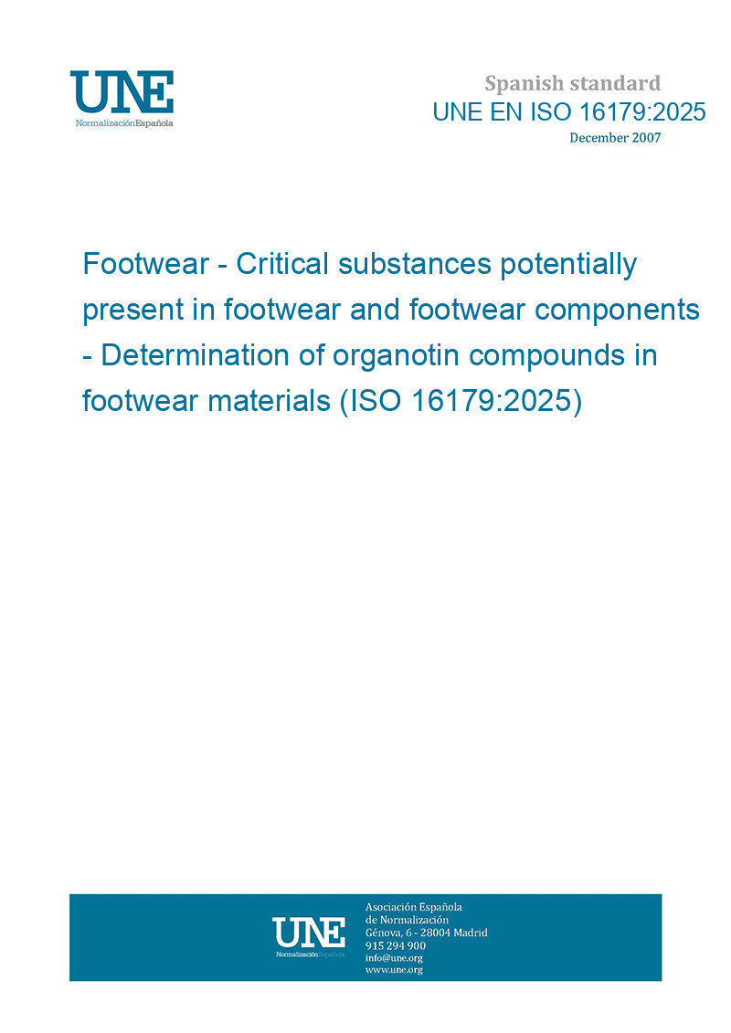 Calzado. Sustancias críticas potencialmente presentes en calzado y componentes de calzado. Determinación de compuestos organoestánnicos en materiales de calzado. (ISO 16179:2025).