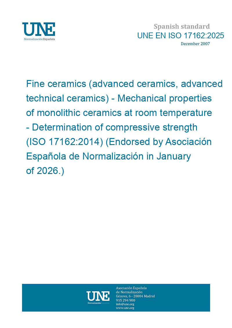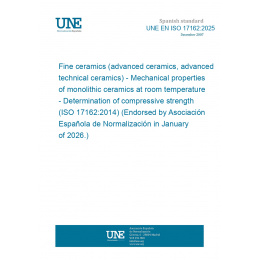 Fine ceramics (advanced ceramics, advanced technical ceramics) - Mechanical properties of monolithic ceramics at room temperature - Determination of compressive strength (ISO 17162:2014) (Endorsed by Asociación Española de Normalización in January of 2026.)