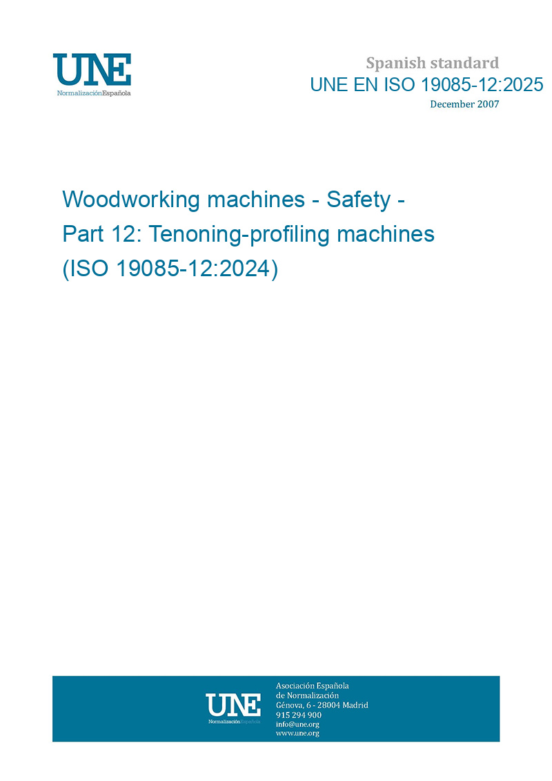 This standard UNE EN ISO 19085-12:2025 Woodworking machines - Safety - Part 12: Tenoning-profiling machines (ISO 19085-12:2024) is classified in these ICS categories: