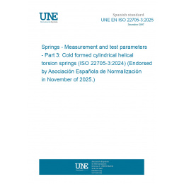 Muelles. Parámetros de medición y ensayo. Parte 3: Muelles helicoidales de torsión cilíndricos conformados en frío (ISO 22705-3:2024) (Ratificada por la Asociación Española de Normalización en noviembre de 2025.)