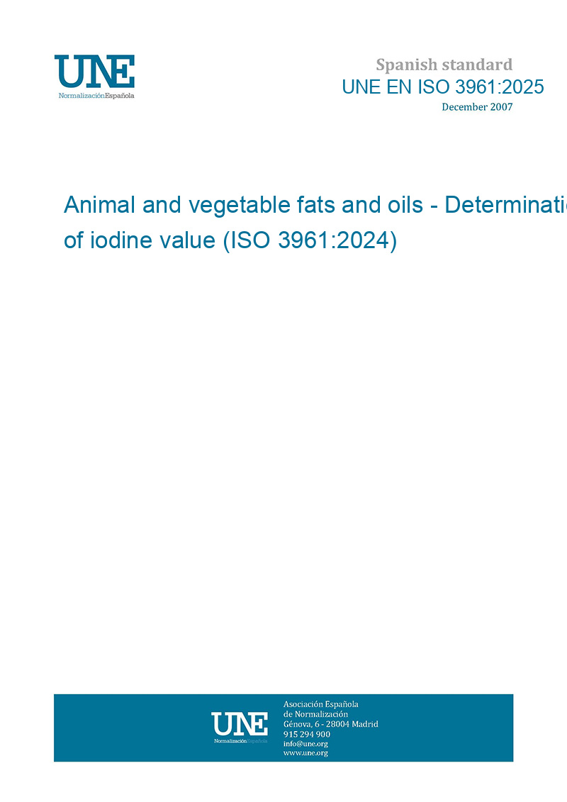 This standard UNE EN ISO 3961:2025 Animal and vegetable fats and oils - Determination of iodine value (ISO 3961:2024) is classified in these ICS categories: