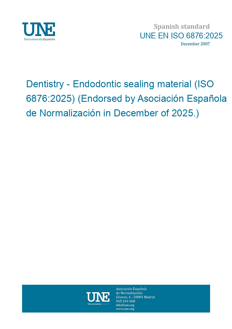 Odontología. Material de sellado endodóntico. (ISO 6876:2025) (Ratificada por la Asociación Española de Normalización en diciembre de 2025.)