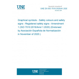 Graphical symbols - Safety colours and safety signs - Registered safety signs - Amendment 1 (ISO 7010:2019/Amd 1:2020) (Endorsed by Asociación Española de Normalización in November of 2020.)