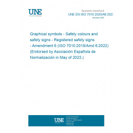 Graphical symbols - Safety colours and safety signs - Registered safety signs - Amendment 6 (ISO 7010:2019/Amd 6:2022) (Endorsed by Asociación Española de Normalización in May of 2023.)