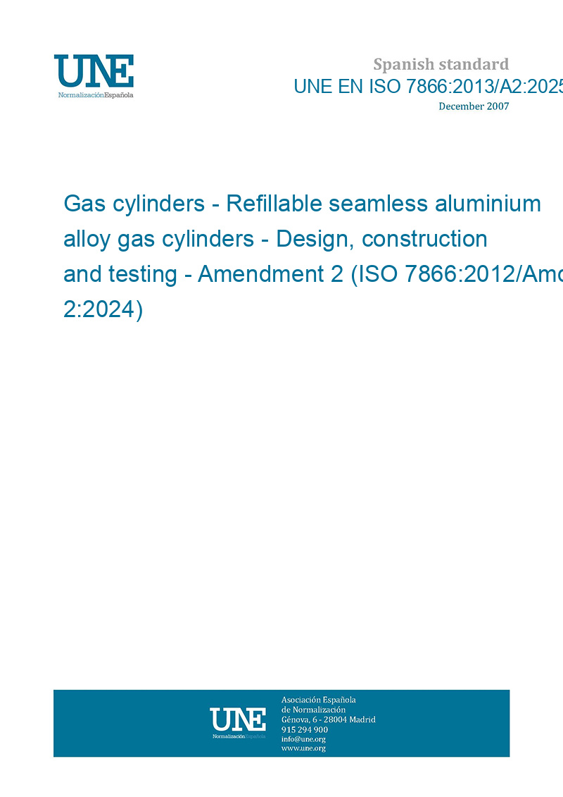 Gas cylinders - Refillable seamless aluminium alloy gas cylinders - Design, construction and testing - Amendment 2 (ISO 7866:2012/Amd 2:2024)