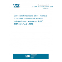 Corrosión de los metales y aleaciones. Eliminación de los productos de corrosión sobre las probetas de ensayo de corrosión. Modificación 1. (ISO 8407:2021/Amd 1:2025).