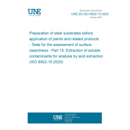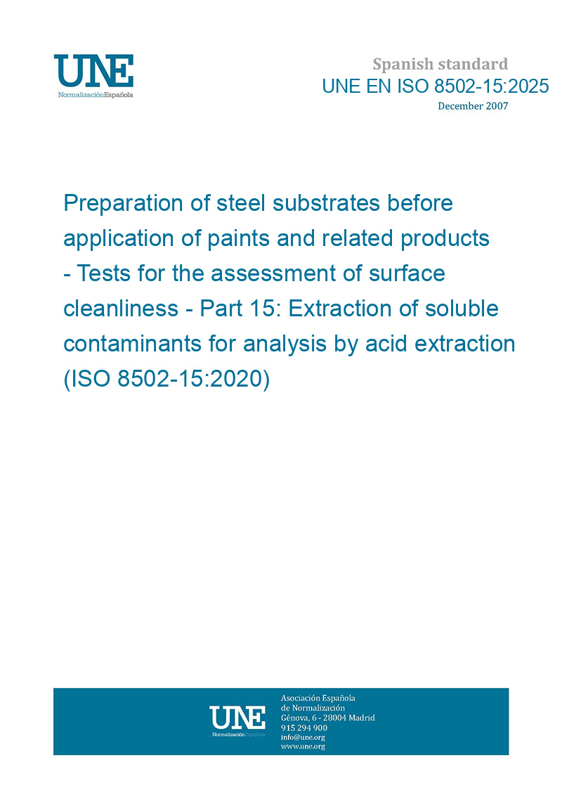 Preparación de sustratos de acero previa a la aplicación de pinturas y productos relacionados. Ensayos para la evaluación de la limpieza de las superficies. Parte 15: Extracción de contaminantes solubles para análisis mediante extracción ácida. (ISO 8502-15:2020).