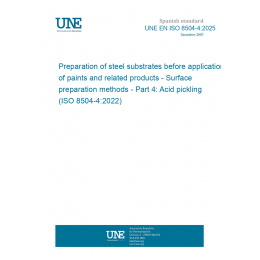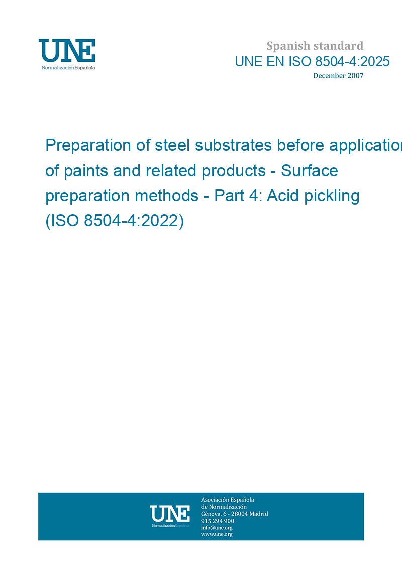 Preparación de sustratos de acero previa a la aplicación de pinturas y productos relacionados. Métodos de preparación de las superficies. Parte 4: Decapado ácido. (ISO 8504-4:2022).