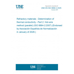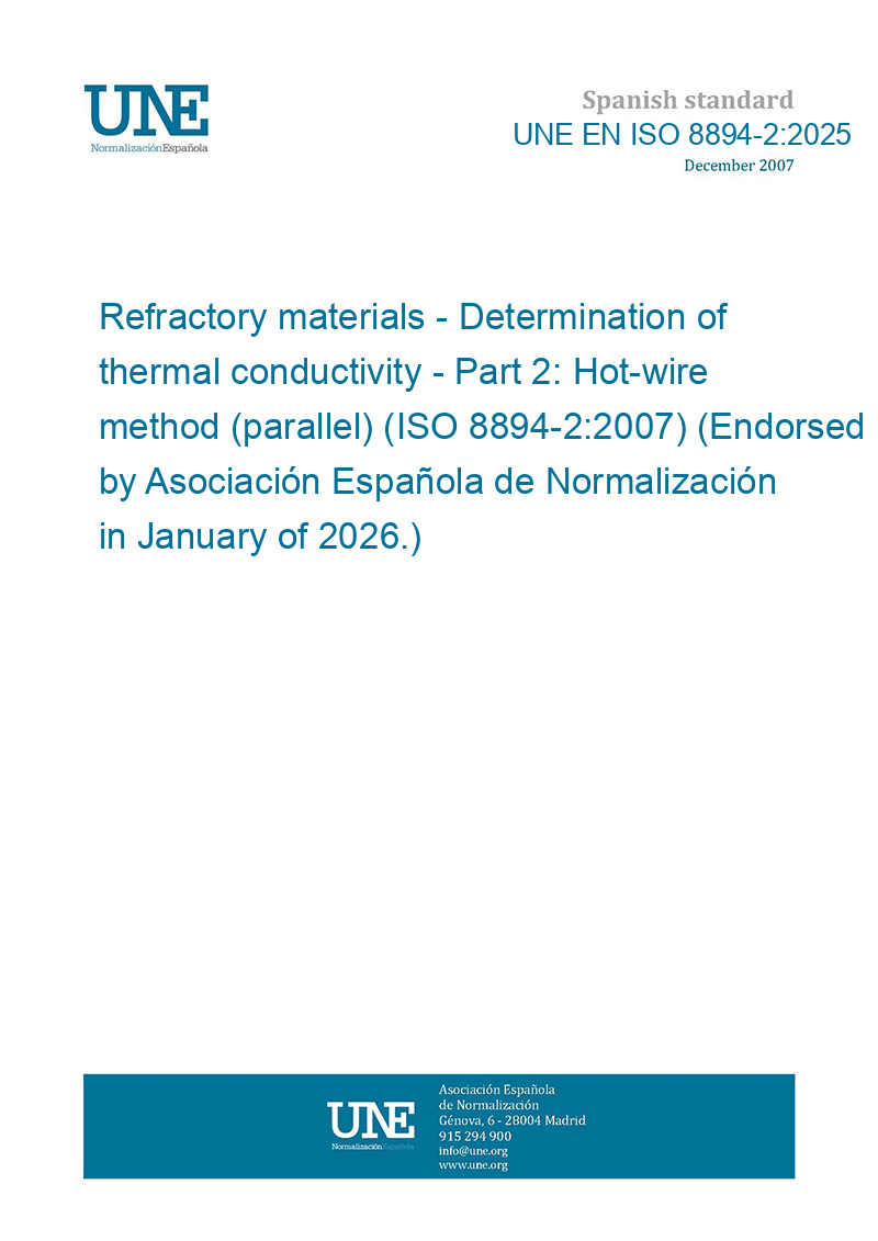 Materiales refractarios. Determinación de la conductividad térmica. Parte 2: Método del hilo caliente (paralelo). (ISO 8894-2:2007) (Ratificada por la Asociación Española de Normalización en enero de 2026.)
