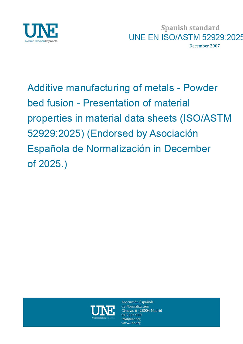 Fabricación aditiva de metales. Fusión en lecho de polvo. Presentación de las propiedades de materiales en las hojas de datos de materiales (ISO/ASTM 52929:2025) (Ratificada por la Asociación Española de Normalización en diciembre de 2025.)