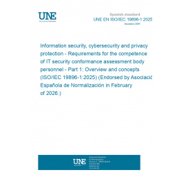 Information security, cybersecurity and privacy protection - Requirements for the competence of IT security conformance assessment body personnel - Part 1: Overview and concepts (ISO/IEC 19896-1:2025) (Endorsed by Asociación Española de Normalización in February of 2026.)