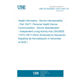 Health informatics - Device interoperability - Part 10471: Personal Health Device Communication - Device Specialization - Independent Living Activity Hub (ISO/IEEE 11073-10471:2024) (Endorsed by Asociación Española de Normalización in November of 2025.)